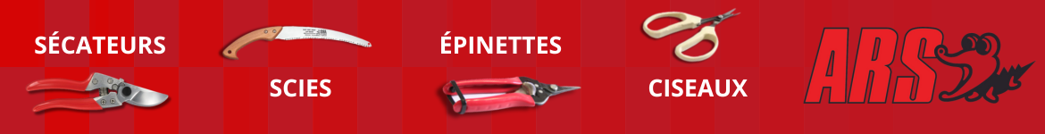 Fondée en 1876, ARS propose à la fois sécateurs d'ébranchage, cisailles à haies, épinettes, ciseaux mais aussi des produits spécifiques comme les sécateurs et les scies sur perche. Ces outils de taille sont fabriqués avec de l'acier de haute qualité.