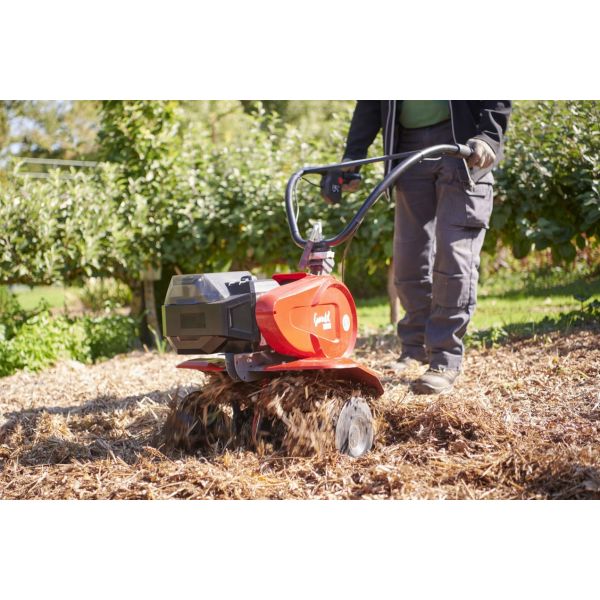 De plus, elle possède une autonomie de 20 min, variable selon le terrain et le type de terre travaillés.