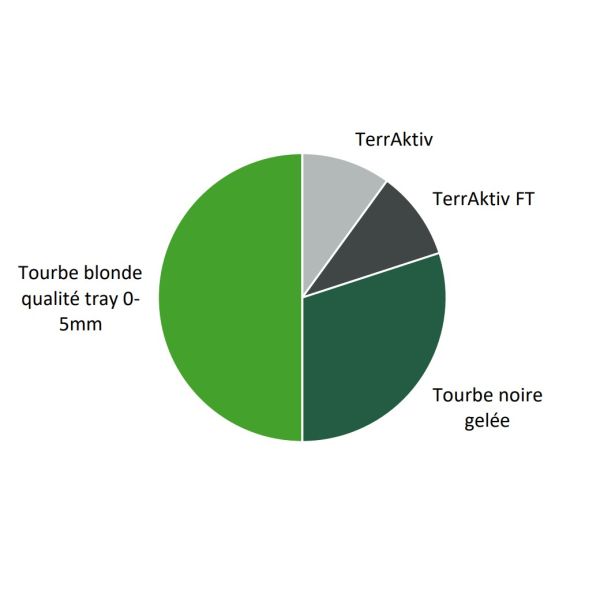 Substrat de tourbe de sphaignes et de compost végétal biologiquement actif.