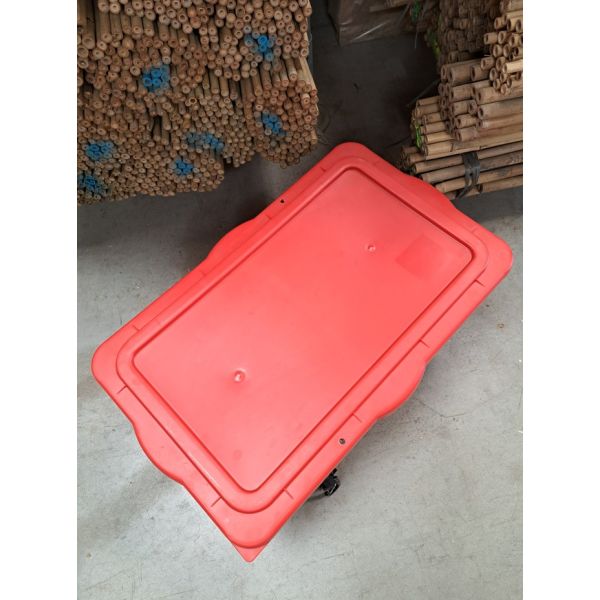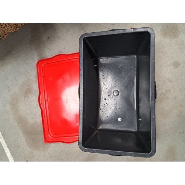 Caisse de rangement renforcée de 90L avec couvercle robuste.