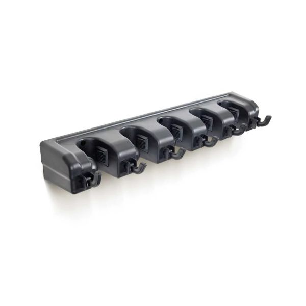 Ce râtelier à 5 places et 6 crochets rabattables est une solution de rangement pratique pour vos outils.