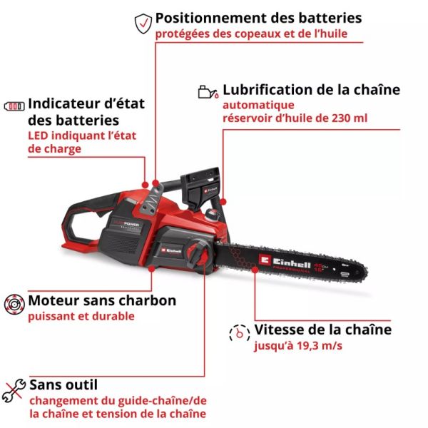 Son design ergonomique et ses systèmes de sécurité intégrés en font un outil fiable pour tous les travaux d'entretien boisé, sans les contraintes d'entretien des moteurs à essence.