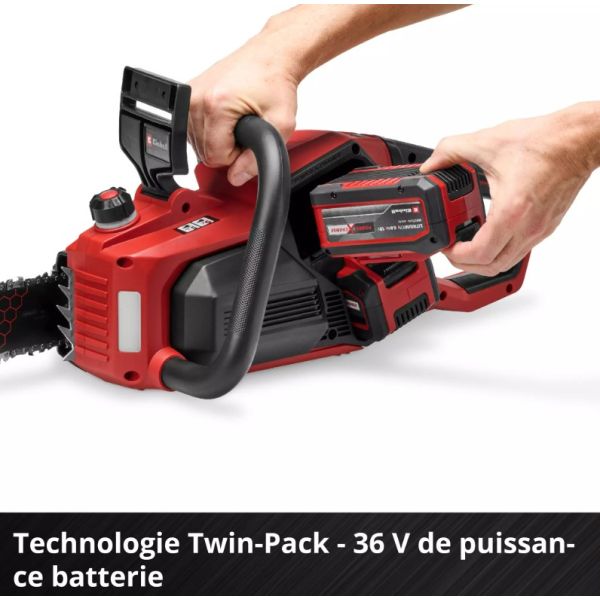 La technologie Twin-Pack combine la puissance de deux batteries 18V pour atteindre 36V, offrant ainsi l'énergie nécessaire pour s'attaquer à des troncs plus épais.