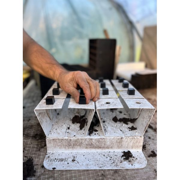 Grâce à son système innovant, il permet de former toutes les mottes d’un plateau standard (55 x 32 cm) en seulement deux passages, optimisant ainsi le temps de travail.