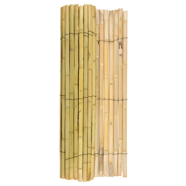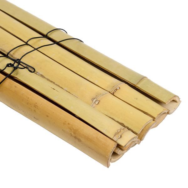 Bambous refendus, reliés par un fil de fer gainé. 100% naturel et biodégradable.