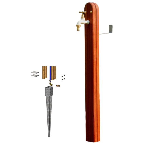 Cette borne de jardin en châtaignier sur socle à planter est la solution idéale pour déporter votre arrivée d'eau sans travaux de maçonnerie.