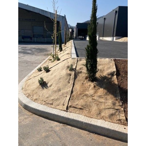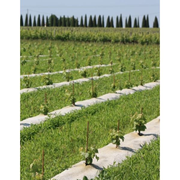 La toile de paillage empêche le développement des adventices et limite l'entretien des plantations.